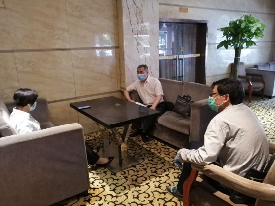 市水务执法总队对接帮扶的武汉小天鹅宾馆有限公司是一家运行多年的老酒店。在疫情影响下,目前酒店还是处于半停业状态,复工复产面临较大困难。5月6日一大早,市水务执法总队再次联系酒店老板,在前期联系沟通的基础上,收集该公司经营发展面临困难和问题;上午,召集分管部门对企业提供的问题清单分条讨论,研议解决和帮扶之策,并向市国资委、市金融局等部门咨询相关政策制度,做好基础工作;下午3点,按照约定的时间来到小天鹅宾馆有限公司,现场调研宾馆经营情况,向企业宣传党和国家支持企业发展的居心和市委市政府惠企的各项政策措施,与企业老板和员工面对面交流复工复产和经营发展之计。