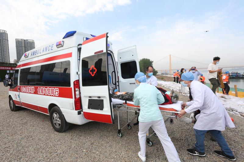 本次演练险情是综合考虑该工程实施过程中各类险情中,选择模拟最可能出现河道岸线滑坡险情;此次演练邀请了市防汛办领导亲临督战,区政府办领导担任演练指挥长现场指挥调度;演练分为综合保障组、巡堤查险组、应急抢险组等6个小组,分别由区人武部、区水务和湖泊局、区应急管理局、区城管局、区卫健局、区房地公司、区市政公司、武汉供电公司、区消防救援大队、长江救援队等单位组成共计90余人,出动120救护车1辆,机械挖掘机1台,应急运输车1辆。