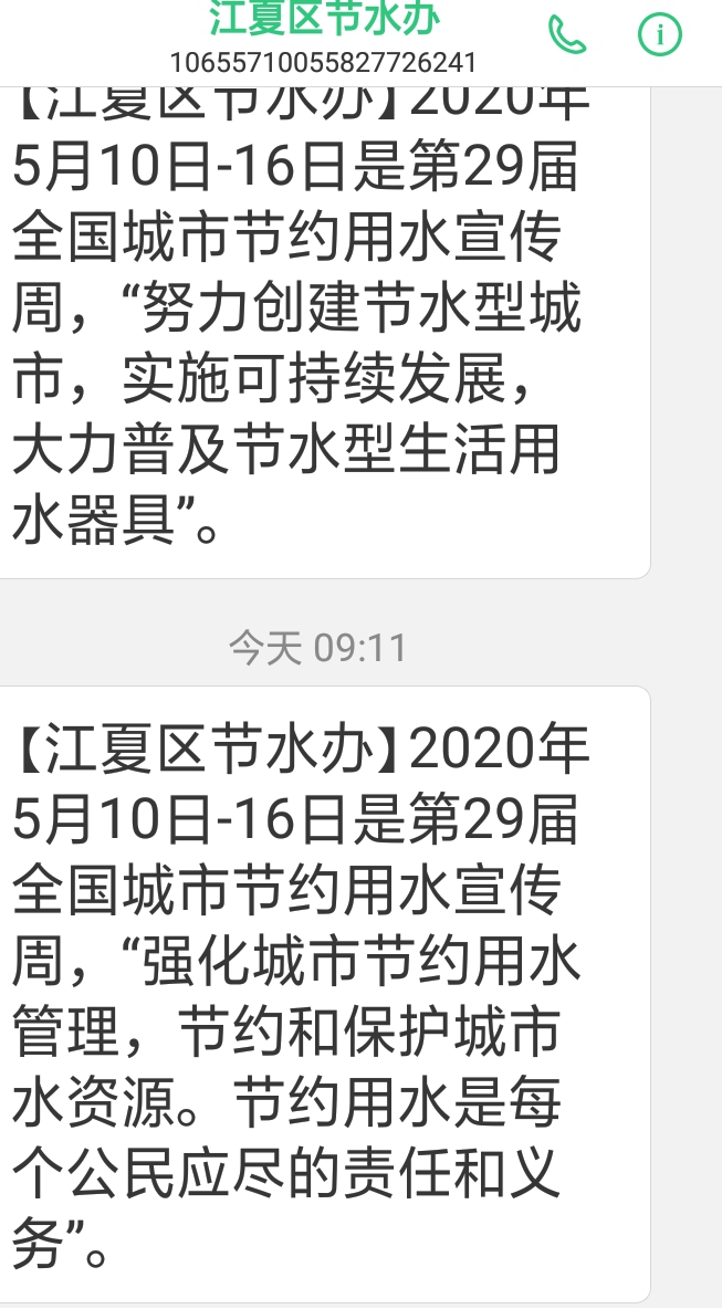 江夏区发送节水小短信推动节水建设