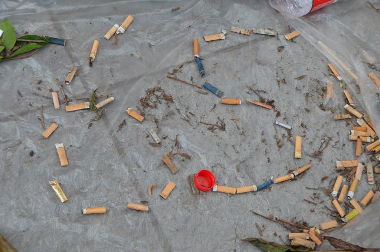 活动结束后,志愿者们用捡到的枯枝败叶和白色垃圾摆成长江造型,将烟头、塑料瓶等垃圾摆出“六五”字样,以此呼吁市民群众保护长江、爱护环境。