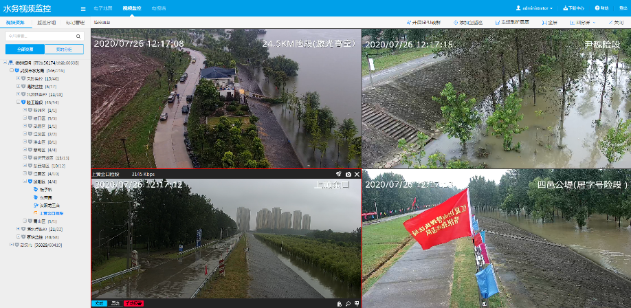 与此同时,市水务防汛信息中心党支部临危受命,兵分四路,连夜完成380公里的现场踏勘及24个历史险工险段的第一手现场资料收集;次日上午,按照工作方案,跨区协调或维修启用已有的30余处视频监控资源(部分险段多处视频资源),部署新建6处视频监控点。从设备选型、采购、安装,到电路、网络链路打通,再到接入市级视频监控平台,市水务防汛信息中心采取超常规措施,在确保施工安全的前提下,5天时间点亮全市24处历史险工险段视频监控。