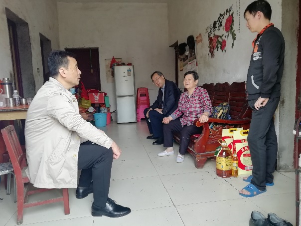 在纸坊街,在看望完中心福利院的两位老人后,副局长祝杰来到帮扶对象丁道江家里,坐下来和他们亲切拉家常,询问今年的生产生活情况,家庭收入情况、老人身体健康情况、小孩上学情况。倪七贵老人很高兴说现在政策好,孙女今年读八年级享受了扶贫助学扶智减免学费1500元;儿子今年疫情期间都在上班,基本没有受到影响;自己身体不好多亏有基本医保、大病保险、医疗救助、大病集中救治、慢病签约服务等好的政策。副局长祝杰听了很高兴,鼓励他们在用好国家扶贫政策的基础上,加大自身造血能力,在已经脱贫的基础上更上一层楼,过上更加幸福的生活。