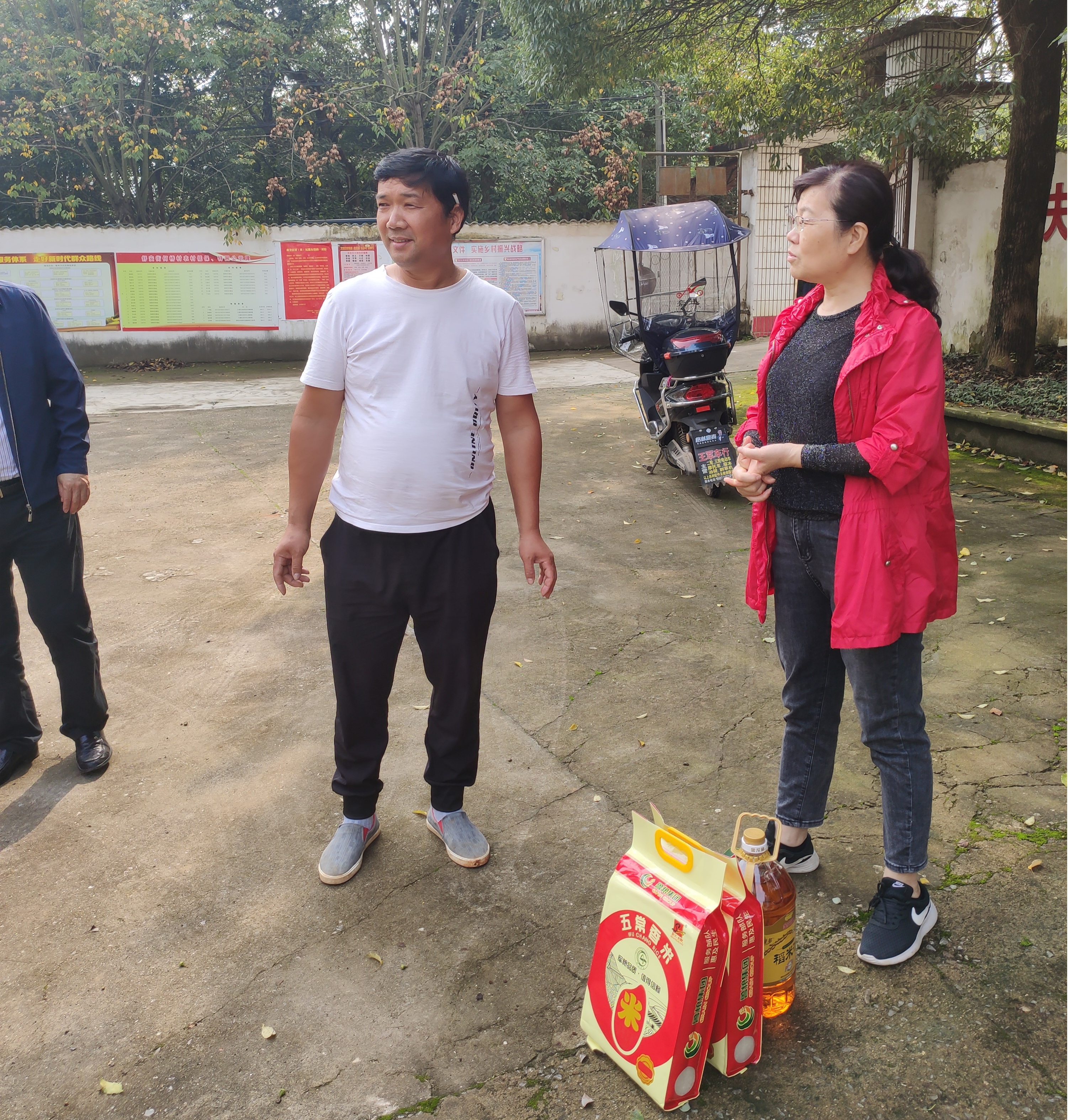 国庆佳节至,中秋月更圆,在10月“结对帮扶月”即将到来、“国庆”“中秋”双节即将来临之际,按照市水务局驻村扶贫工作安排和局党组的统一部署,局党组成员、副局长祝杰、张军花带领结对帮扶干部、工作队走访慰问江夏区舒安街何桥村贫困户,为何桥村30户贫困户送去了米、食用油以及牛奶、麦片等生活物资,这些物资都是局工会组织局系统干部职工个人捐款购买的,表达了市水务局每一位干部职工对何桥村贫困户的浓浓关怀,深深温暖了贫困户的心。