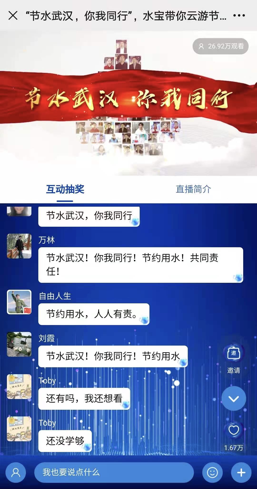 讲解中还穿插了快速答题和抢红包活动,1个小时的直播活动让大家在寓教于乐中了解节水科技馆,学习了节水知识,赢得市民的好评。
