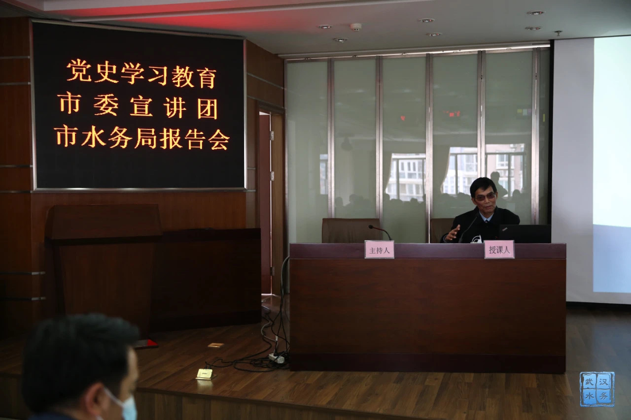 市委党史学习教育宣讲团成员,武汉理工大学马克思主义学院教授高巍翔应邀作宣讲报告。市河长制工作办公室(四水共治工作办公室)昌先耀主任主持报告会。局机关全体干部,局属单位、市水文局班子成员及党务工作者共计100余人参加报告会。