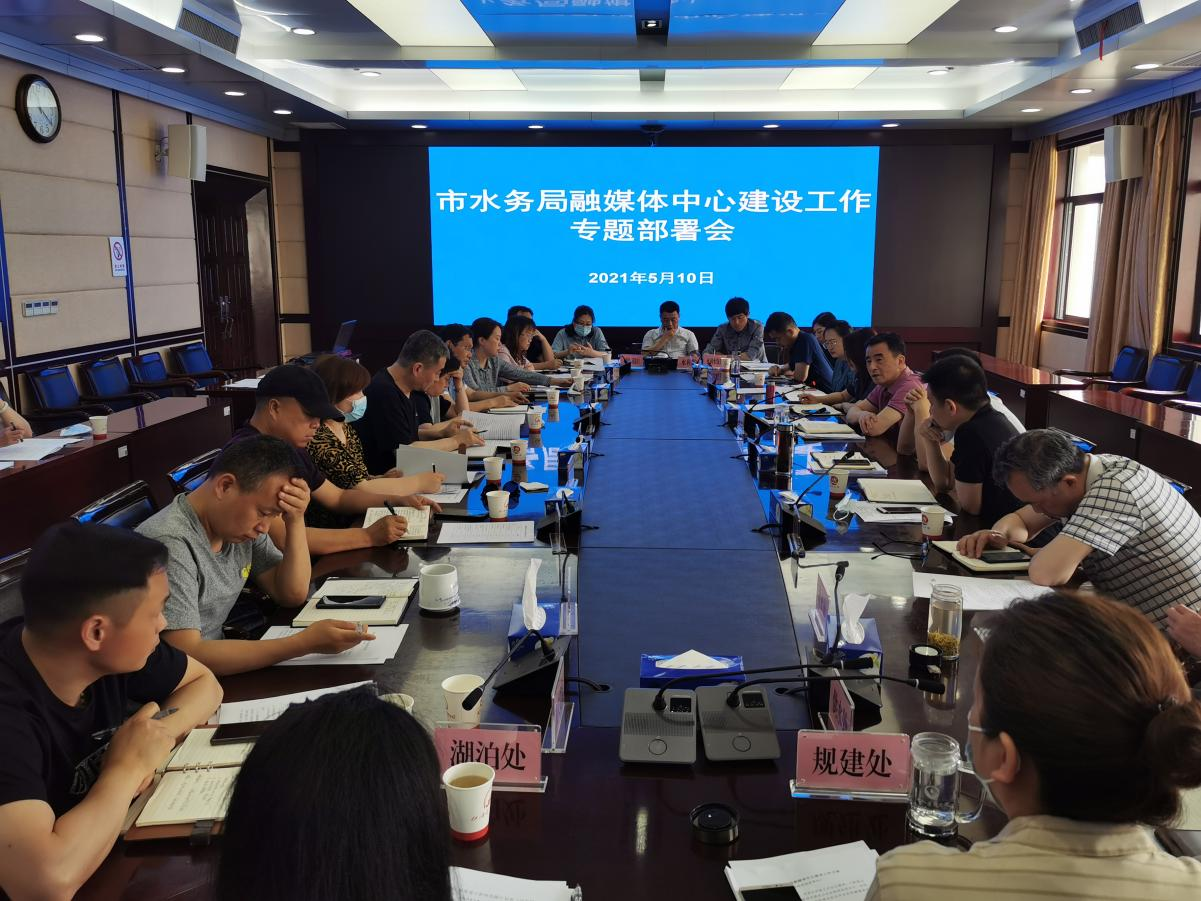 为进一步提档升级武汉水务新闻宣传工作,加快推进局融媒体中心建设及规范运行,2021年5月10日上午,市水务局在局5楼大会议室组织召开局融媒体中心建设工作专题部署会。局二级巡视员祝杰出席会议。