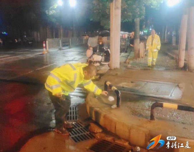 除此之外,江夏区水务和湖泊局严格按照“一点一策”方案,安排出动巡查值守人员及各类排渍应急保障设备,对马山湾、九全嘉、和平农庄涵洞、文化路长职等重点区域重点部位24小时盯防,发现问题及时处置。对井盖因水量过大顶托移位的情况安排专人看守或设置围挡警示标志,退水后将井盖及时复位,确保不发生车辆陷落、人身伤害等情况。截至目前,共出动巡查值守员260余人,各类应急保障车辆45台套。