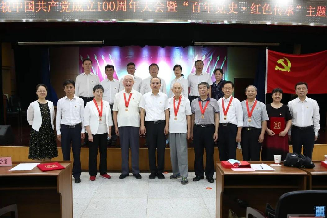 会议大厅内,气氛热烈而庄重。“两优一先”获奖人员代表和荣获“光荣在党50年”纪念章的老党员代表在前排就座。