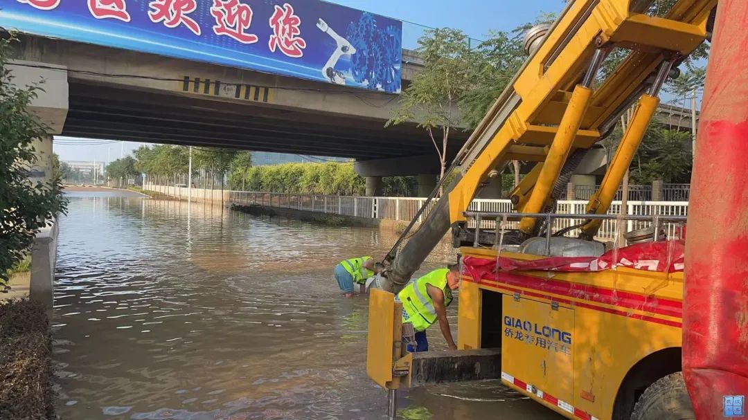 救援队根据现场情况,优化调度设备及人员,全面攻坚抢排3处积水点。