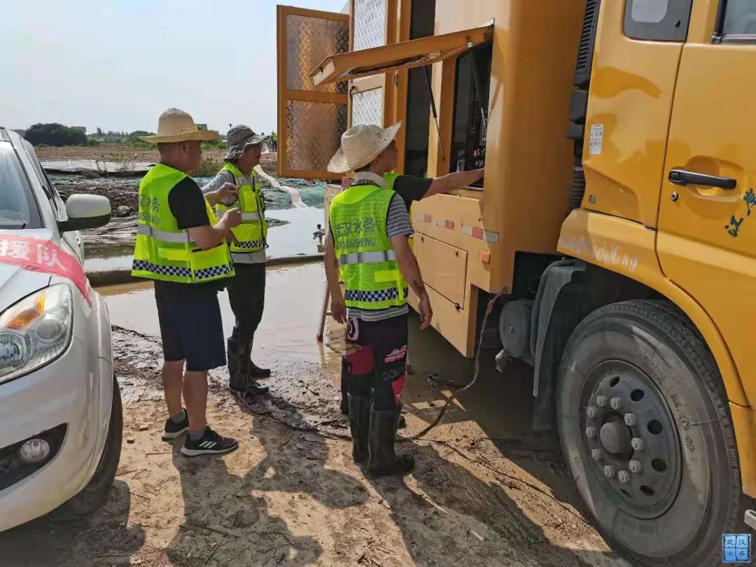 象湖湾配置4台“龙吸水”泵车,抽排能力达8800立方米/小时,由硚口区、武昌区、蔡甸区、江夏区水务部门联合抽排。