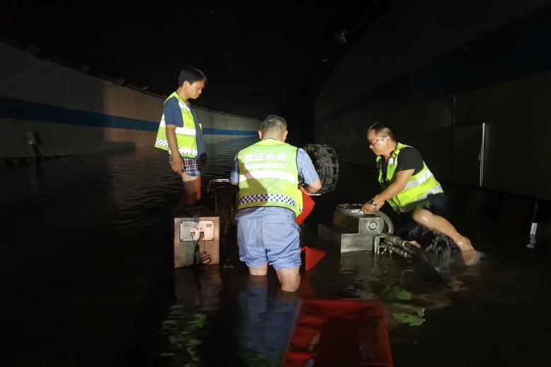 红专路隧道是郑州市城市主干道,隧道积水长度800余米,宽50米,最深达7米,积水量约30万方。为加快抢排进度,尽快打通隧道,恢复交通,市泵站处救援队克服人员不足,疲劳作战等困难,调配抢险队队长廖庆生带领汪天兴、杨改2名骨干前往红专路,与经开水务、新洲水务、汉阳水务协同作战。廖庆生等3人是市泵站处有着丰富经验的抢险专家,参加过多次武汉市排水抢险任务。抵达红专路现场后,他们凭借丰富经验,最快速度熟悉新洲水务提供的抽排设备,投入红专路抽排攻坚。