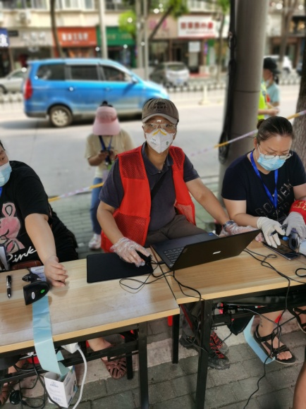 8月5日,市收费处(质监站)党员鲁罕、肖刚、雷涛、陈祥等4名同志,准时到达新华家园社区顶琇国际公馆检测点,继续协助社区做好身份信息录入、居民体温测量、维持现场秩序等工作。当天上午共协助社区完成925人的检测采样。