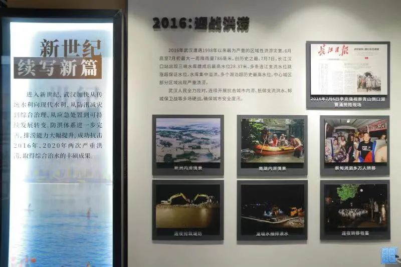 观众可随着时间轴,通过展厅内大量抗灾历史图文与历史物品,回望武汉三次大洪水的惊险场面,感知武汉水务事业的发展和防汛能力的变化,感受党和政府的坚强领导下武汉人民的英勇无畏。