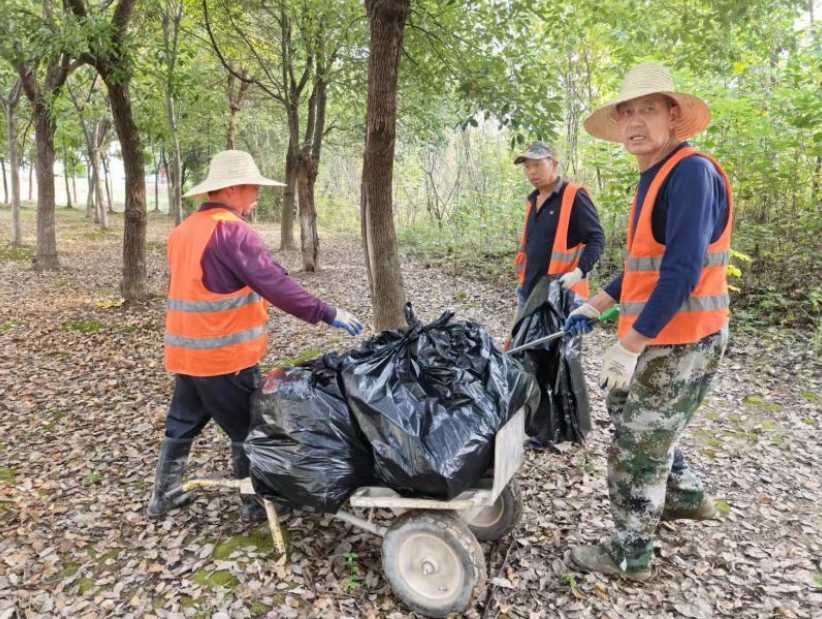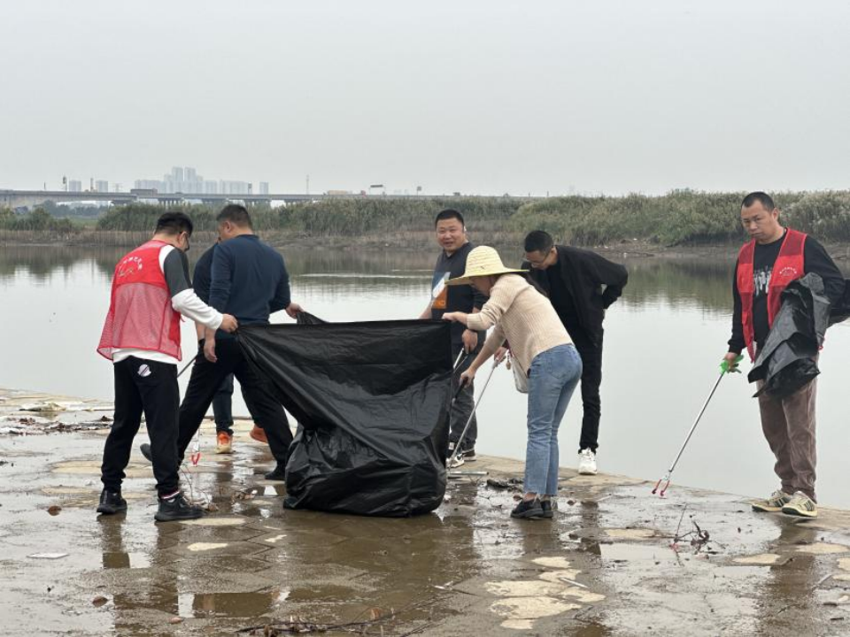在通顺河黄陵矶闸堤岸,40余名志愿者身着志愿者马甲集结合影。垂钓人员遗留的垃圾成为他们重点关注和清理的对象,志愿者们分工明确、配合默契,经集中清运,共清理垃圾约3吨。