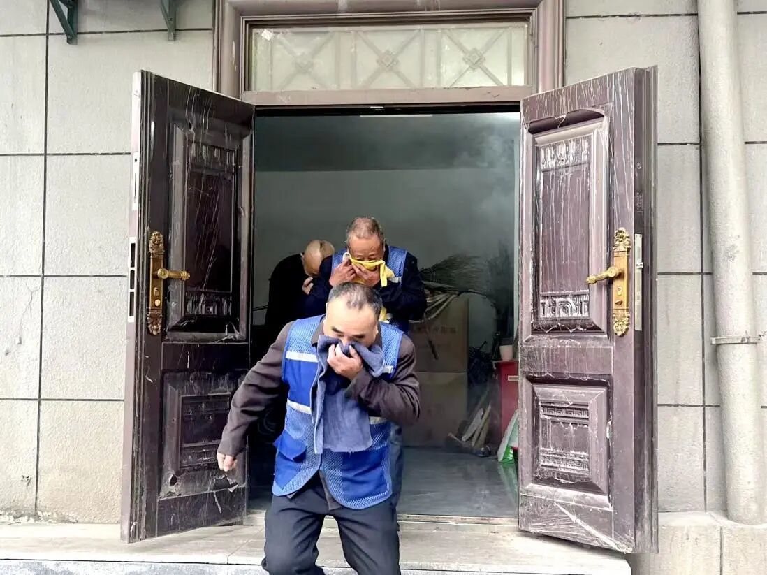 11时,演练场地转至江汉区港18码头工人休息间,油锅起火应急处置科目开始。模拟场景中,工人烹饪时因操作不当导致食用油高温起火,慌乱中误用水浇泼,火势瞬间失控蔓延。危急时刻,休息间工人们沉着冷静,严格遵循应急疏散预案,全员弯腰捂鼻有序撤离,撤离后迅速清点人数确认无人员被困,并第一时间拨打消防求助电话。消防官兵抵达现场后,采用覆盖窒息法精准扑灭火焰,成功化解险情。消防站负责人结合演练疏散要领、防护步骤等细节提出整改建议,并针对不同起火原因,讲解对应的灭火方法。