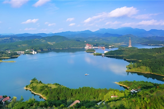 道观河水库生态本底优良,森林覆盖率达56.3%,水质常年稳定在Ⅱ类以上,空气中负氧离子充沛,栖息鸟类达四百多种。近年来,新洲区水务和湖泊局深入践行“绿水青山就是金山银山”理念,统筹推进水体治理、生态修复与产业融合,唤醒“沉睡”的水利资源。