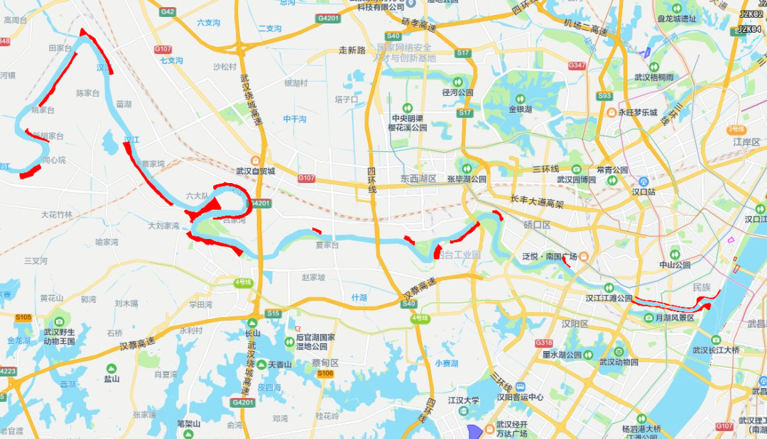 本次测量覆盖28处险工险段,横跨武汉多个行政区:长江10处(汉南区水洪口至苕窝子险段)、汉江18处(蔡甸区谢八家至月湖桥至河口全河段),测量精度达1:1000、1:2000标准。项目团队不仅完成高精度水下地形图测绘,还对比近5年资料,深入剖析河床深泓线演变、冲淤动态及岸坡坡比变化,最终形成针对性结论与建议。
