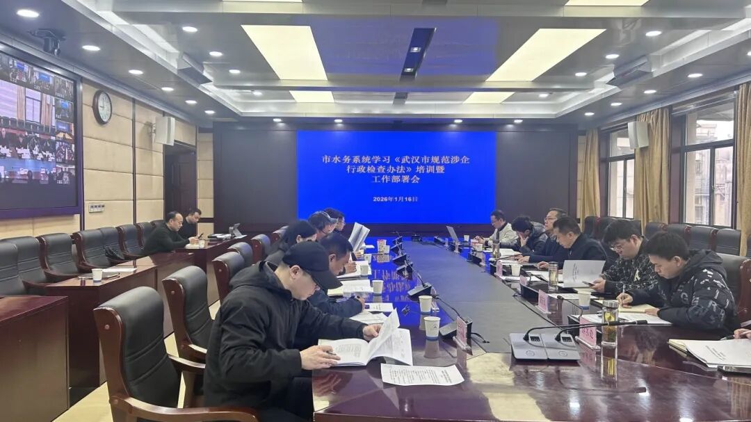 1月16日,市水务局组织召开全市水务系统学习贯彻《武汉市规范涉企行政检查办法》(以下简称《办法》)培训暨工作部署会议,深入学习贯彻习近平总书记关于涉企行政执法工作的重要指示精神,全面解读《办法》,安排部署全市水务系统规范涉企行政检查工作。市水务局二级巡视员昌先耀同志出席会议并讲话。