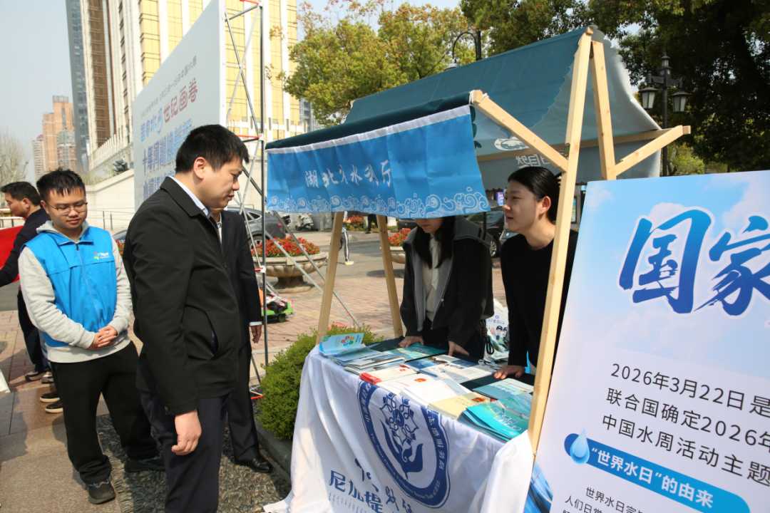 3月28日上午,湖北省水利厅、武汉市水务局在汉口三阳路江滩联合举行第39届“中国水周”公众宣传活动,将水法治宣传推向群众、深入人心,为绘就国家水网美好世纪画卷贡献法治力量,省水利厅政法处、市水务局执法监督处、市流域中心参加现场活动。