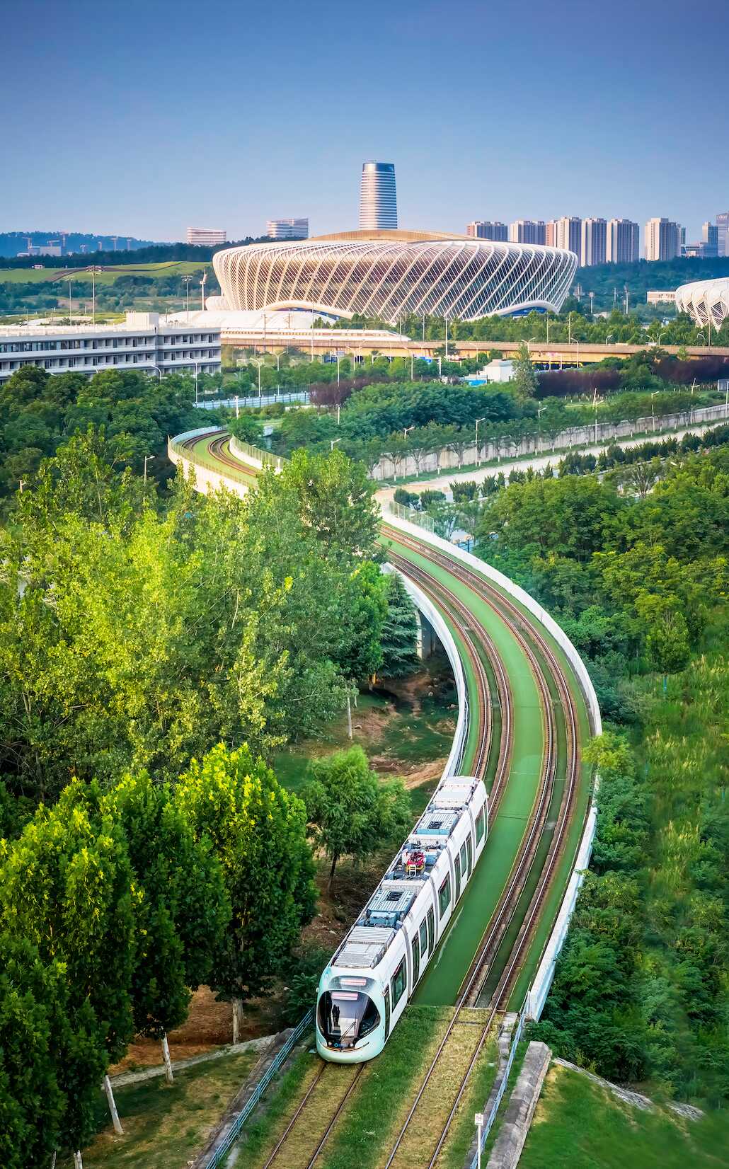 光谷国际网球中心,飞驰的高铁与有轨电车(图|中国光谷)