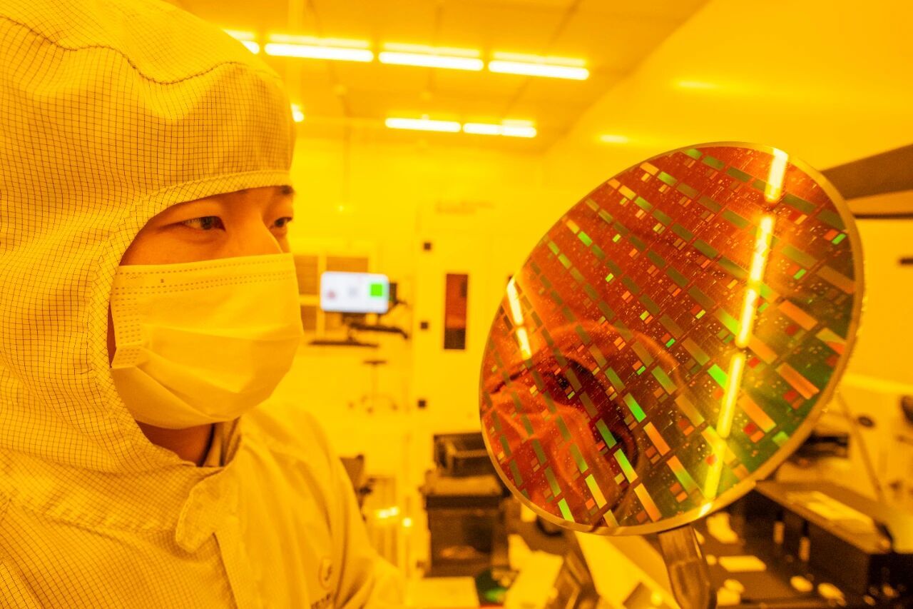 九峰山实验室科研人员在检查芯片晶圆(魏铼|摄)