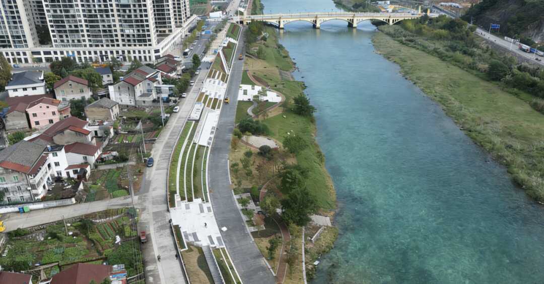 丽水小安溪通过系统活化水域岸线,打造了主题鲜明的“十八堰”景观体系。同时,修复300亩滩地、释放14万平方米水域,建成了天然浴场、嬉水区与绵长滨水绿道,将城市与自然串联成一条诗意盎然的亲水走廊。