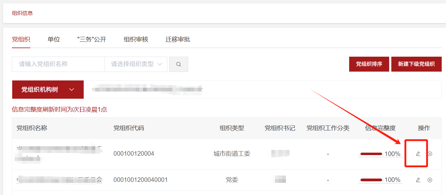 3.完善党组织、党员基础数据(3月底前)。平台上线后,各级党组织需迅速完成党组织、单位、党员等基础数据的校准完善。需在3月底前将党组织、单位、党员信息完整度,单位建立党组织准确率完善至90%以上。