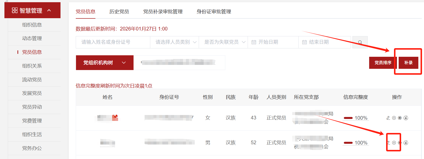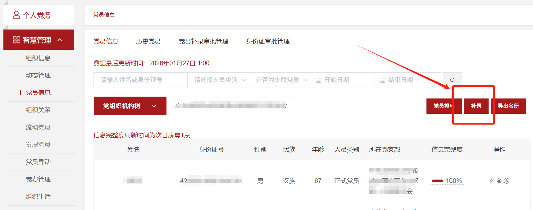 如党员身份信息丢失则需补录(注:补录党员功能仅在基础数据完善阶段临时开放,3月底关闭);