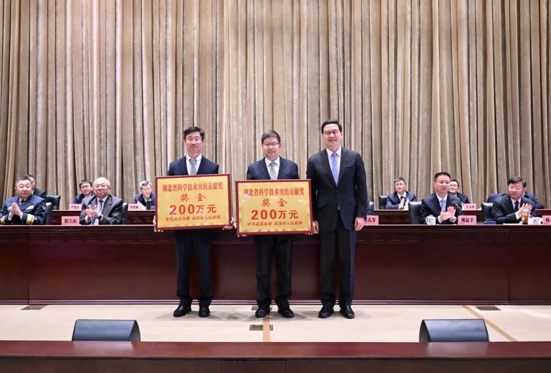 武汉大学党委书记朱孔军,中国工程院院士、华中科技大学校长尤政,海军工程大学校长彭涛,以及两院院士陈立泉、丁烈云、谢先启、刘胜、鲁军勇、刘泉声、张锦岚、赵书红,中电海康集团有限公司董事长陈宗年应邀出席会议并在主席台就座。盛阅春现场为2025年度省科学技术突出贡献奖获得者龚健雅院士、丁烈云院士颁奖。