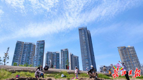 4月25日,武汉又见蓝天白云的晴朗天气。一些市民来到江滩,享受春日好时光。