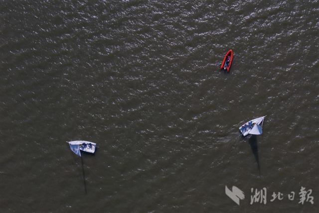 4月24日,帆船运动爱好者在东湖练习帆船。当天,武汉阳光明媚,东湖白帆点点,湖水春心荡漾,岸边杨柳依依,遍地鸟语花香。(湖北日报全媒记者 柯皓 摄)