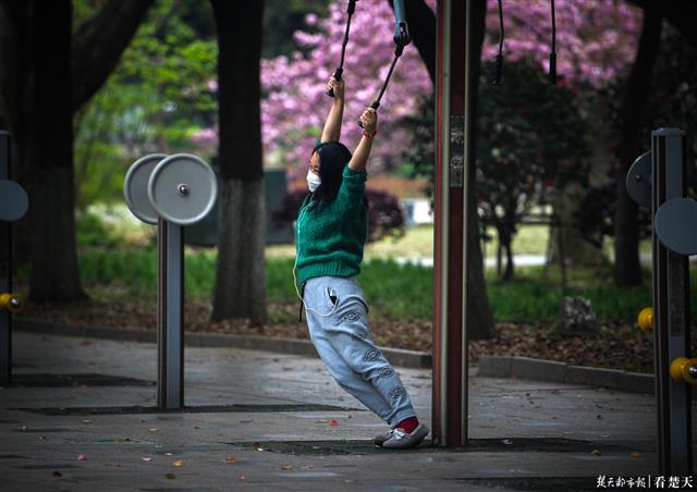 楚天都市报4月2日讯(记者刘中灿)4月2日,天气阴转多云,武汉的标志性景点汉口江滩公园陆续有市民进入,大家戴着口罩,来公园内散散步,健健身,欣赏风景,看看这座大病初愈的城市,已渐渐好转的城市。