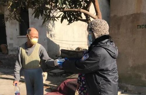 武汉市妇联党员周蔼鸿到居民家中送药。