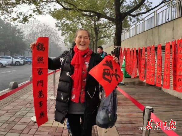 拿到春联和福字的市民都喜笑颜开 武汉地书协会姚峰 摄