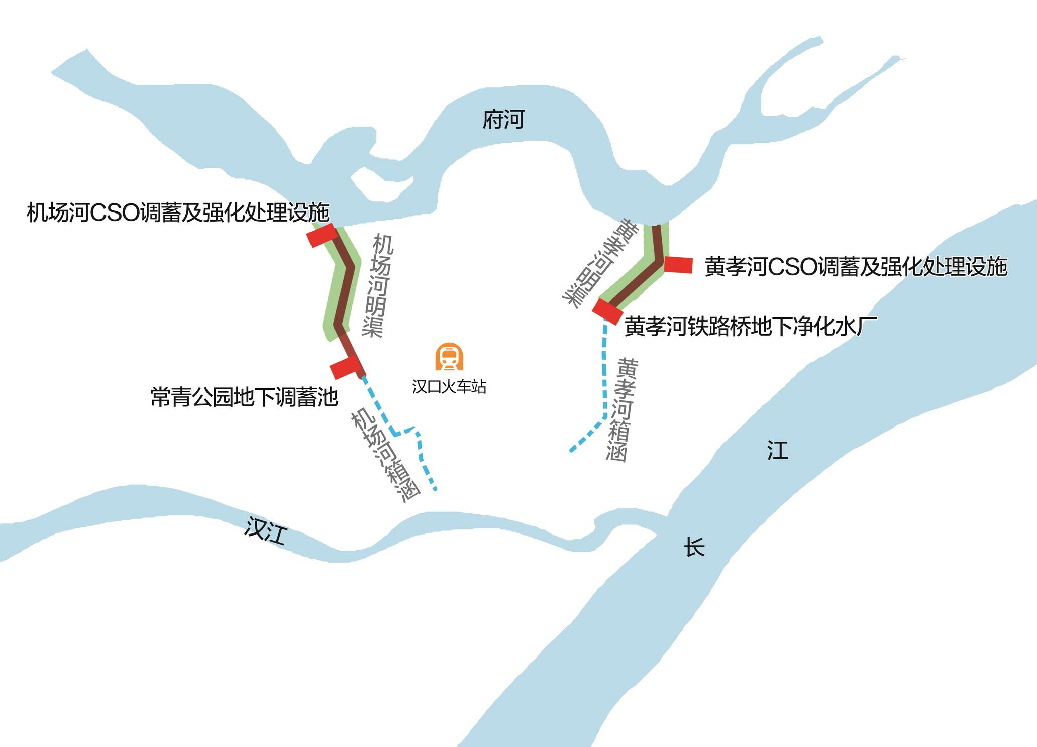 黄孝河、机场河水环境综合治理二期工程示意图 绘图刘阳