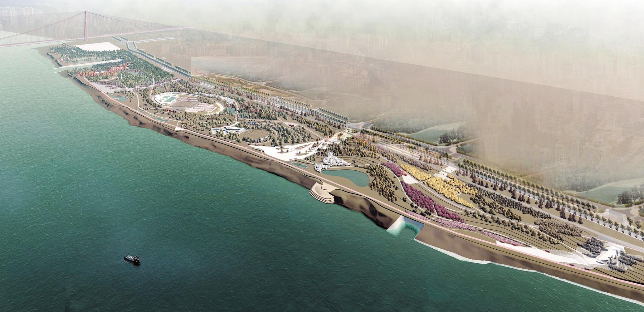 白沙洲江滩近日开工,全长3.1公里,将建设流水台地、江船逐流、落英花园三个主题广场,力争2021年完工面向市民开放。图为江滩效果图 建设方供图