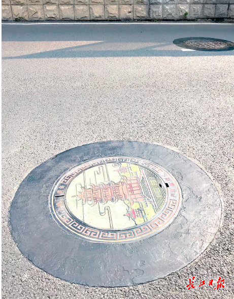 精致的黄鹤楼彩绘井盖。 通讯员王怡人 摄