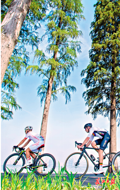 军运会男子公路自行车赛,运动员在东湖绿道骑行竞技。记者胡九思 摄