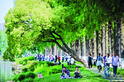 东湖绿道水岸线越来越靓丽,游人或漫步或骑行,或躺在湖边草地上小憩 长江日报记者任勇 摄 |