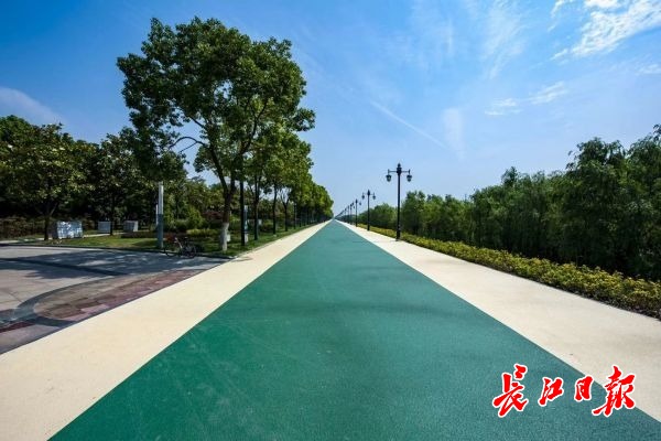 “我边走边拍,绿白相间的色彩,格外醒目”,摄影爱好者黄忠莉感叹汉口江滩三期的变化,拍下这条观江道。她说,在炎热的中午,走了2个多小时,终于在二七大桥下面,看到了紫色的马鞭草。“在这里我一人,记录了汉口江滩三期的花海、道路,快乐的心情溢于言表。”