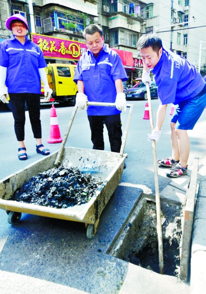 楚天都市报:烈日下疏捞工忍着臭味清掏管道,尽量保证淤泥不落地,减少对环境的影响