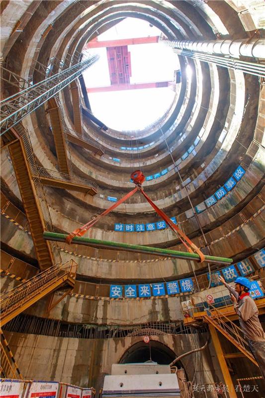 今天下午, 记者来到了6号竖井,43.4米深,约14层楼深。乘坐电梯下到竖井底部,有一种“坐井观天”的感受。盾构施工材料都是从地面通过龙门吊,吊至井下。再经电瓶车运送至作业区域,工人精心指挥,不能出丝毫差错。