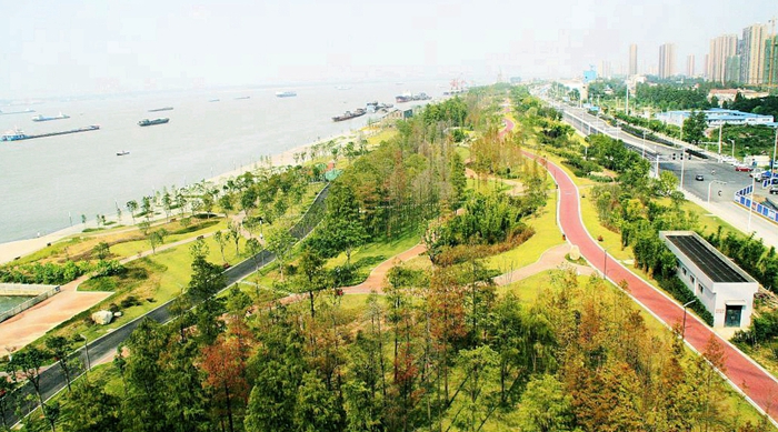 青山江滩,即武青堤(铁机路—武丰闸)堤防江滩综合整治园林景观工程(青山段),俗称“青山江滩”, 全长7503米,新建园林绿化面积94.8公顷,是集防洪、生态、民生为一体,以“延续青山文脉 演绎生态风貌”为主题, 践行“长江生态大保护”理念的综合性园林景观工程,青山江滩开园以来,已接待游客239万人次,植被绿化每年增加碳汇量723.8吨,释放氧约2400吨,是湖北首个海绵江滩。
