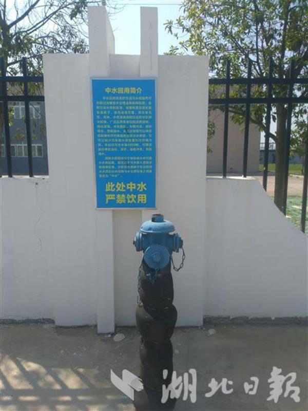 5月5日,走进武汉市黄陂前川污水处理厂,厂区内花草茂盛、干净整洁,看不到污水的影子。厂区外,两个蓝色的取水栓格外显眼,旁边挂着“此处中水、禁止饮用”的标识,并附有中水回用的介绍。