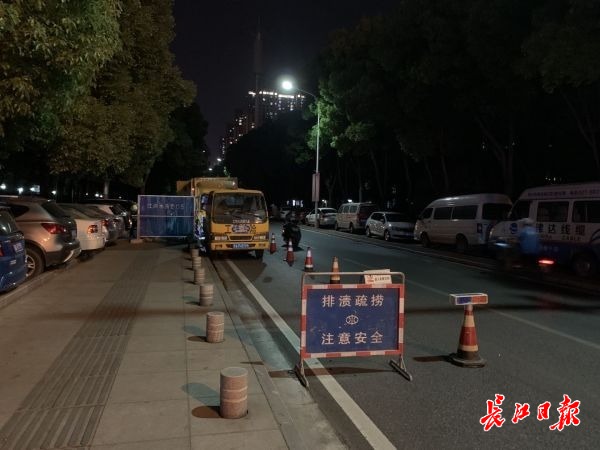 长江日报-长江网5月23日讯(见习记者王怡人 通讯员张开元)22日晚8时30分,长江日报-长江网记者到达百步亭温馨路箱涵现场,“排渍疏涝 注意安全”的施工提示牌,已一字排开。