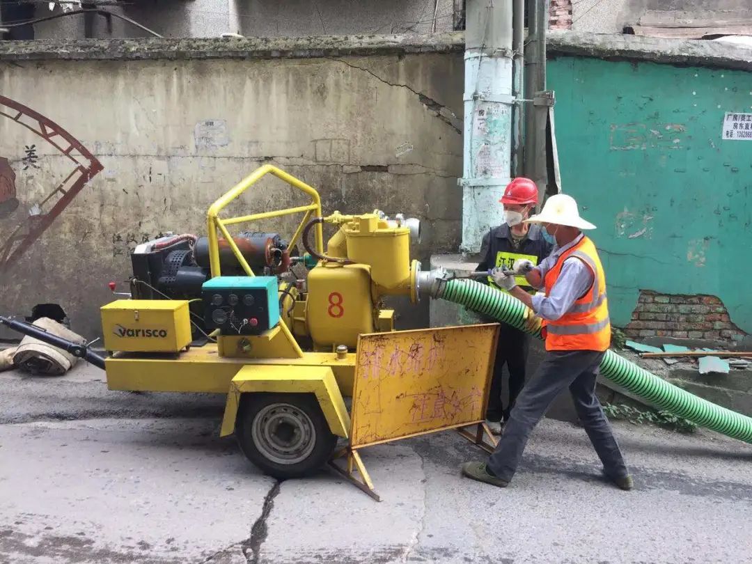 △青山区水务和湖泊局严格落实排渍预案,排渍突出队提前到达风险点位,使用泵车提前预排。