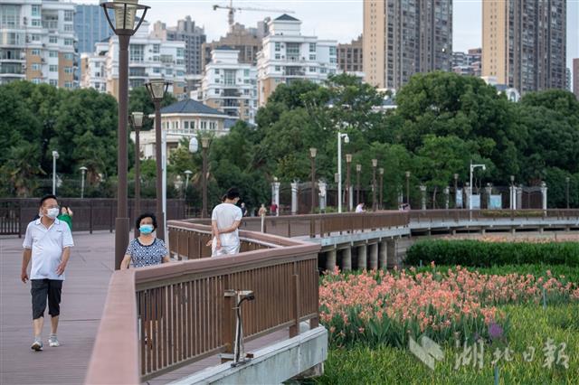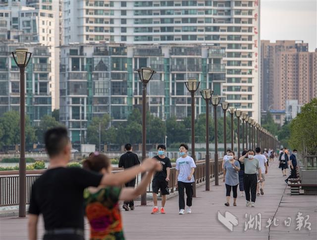 6月6日傍晚,武汉南湖珞狮路路段亲水步道,市民在清风徐徐中散步、休闲。