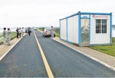 武汉晚报:童家湖防汛大堤搭起集装箱值守点