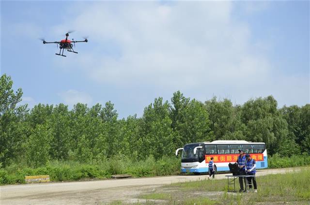 湖北日报:武汉东西湖:高科技设备首秀防汛抢险演练现场