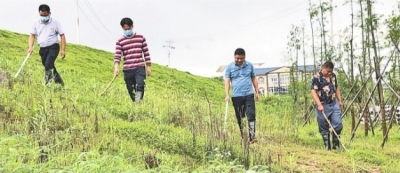 6月29日,童家湖堤段防汛人员开始沿童家湖堤左岸巡查险情隐患。